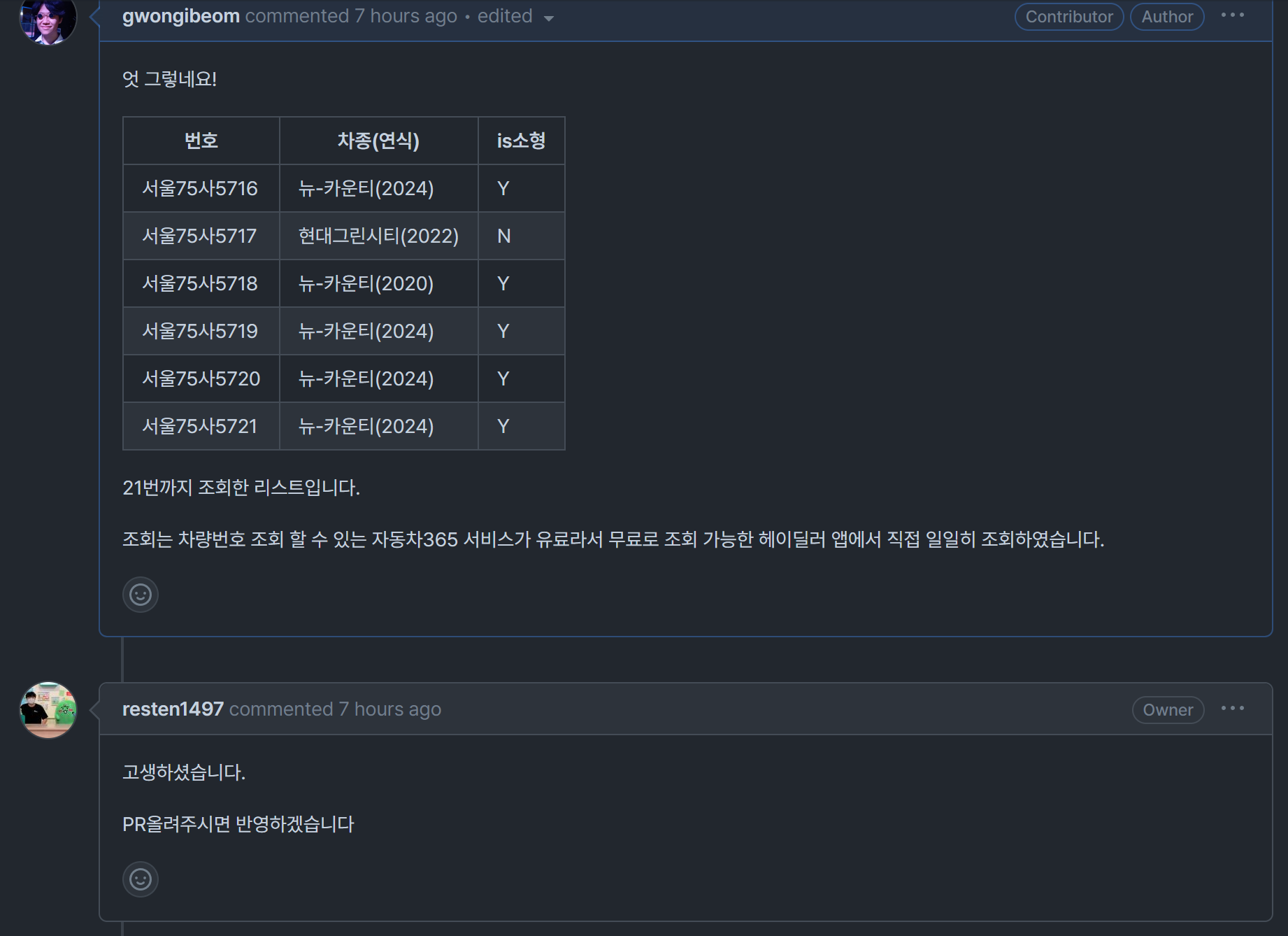 근데 API에서 제공하는 차량고유번호와 차량번호는 달랐다.
